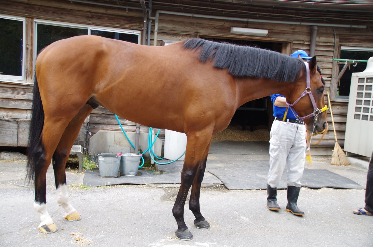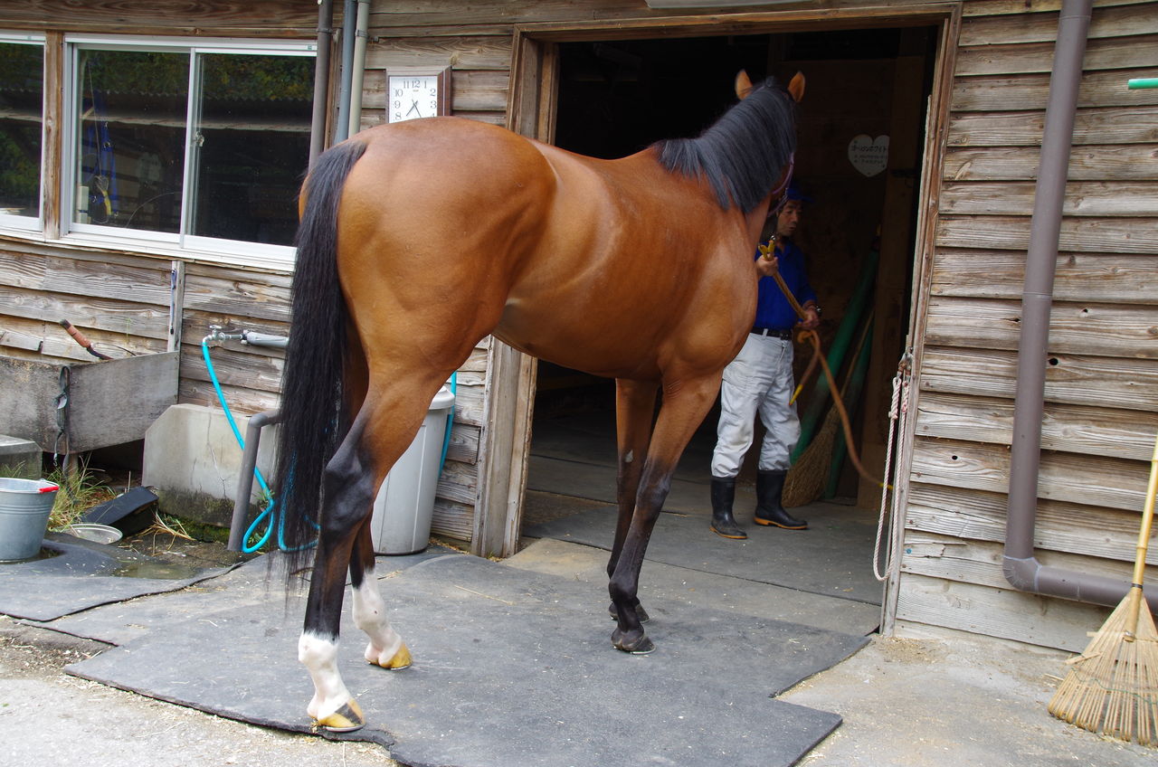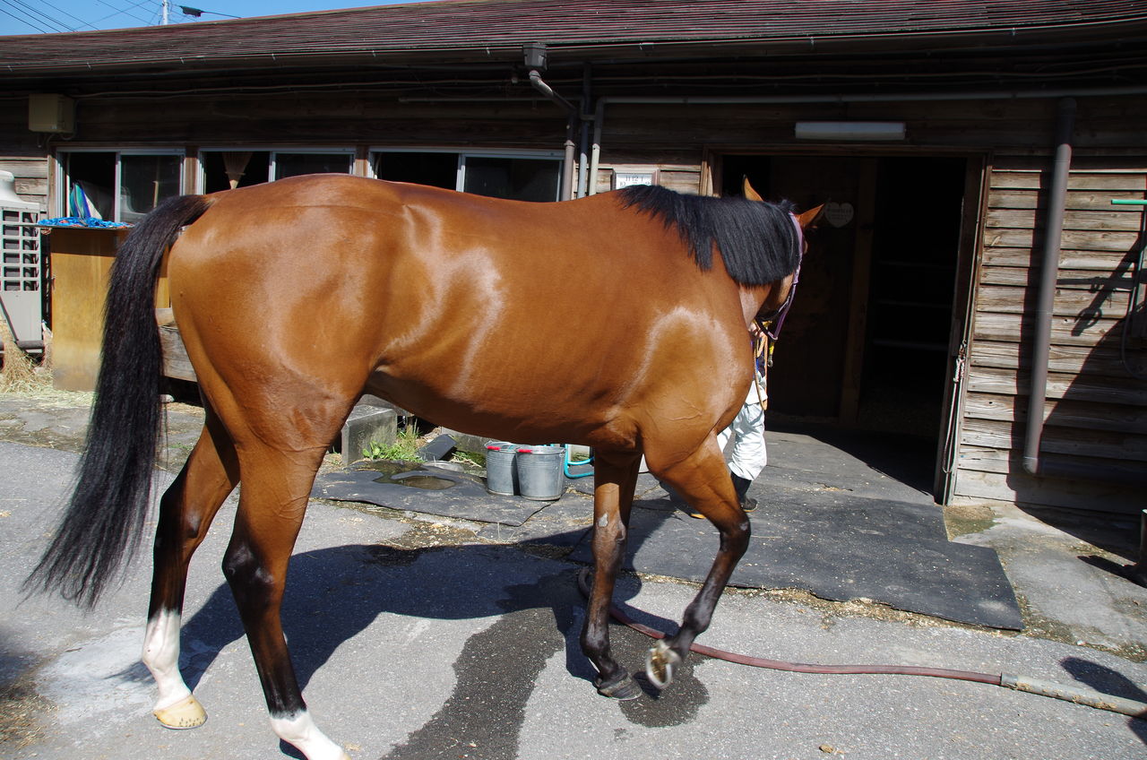 歩様は少しゴツゴツしてましたが、蹄鉄を変更しましたら今日は熱が引きました。