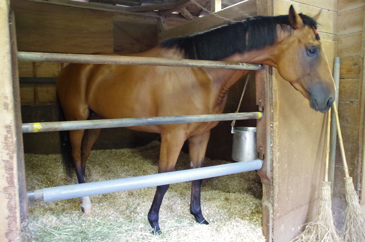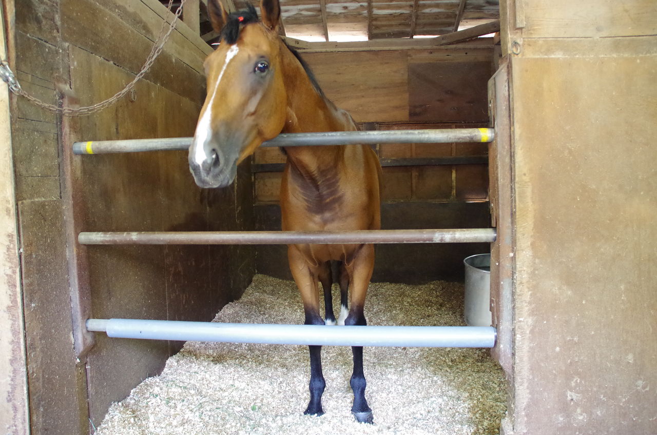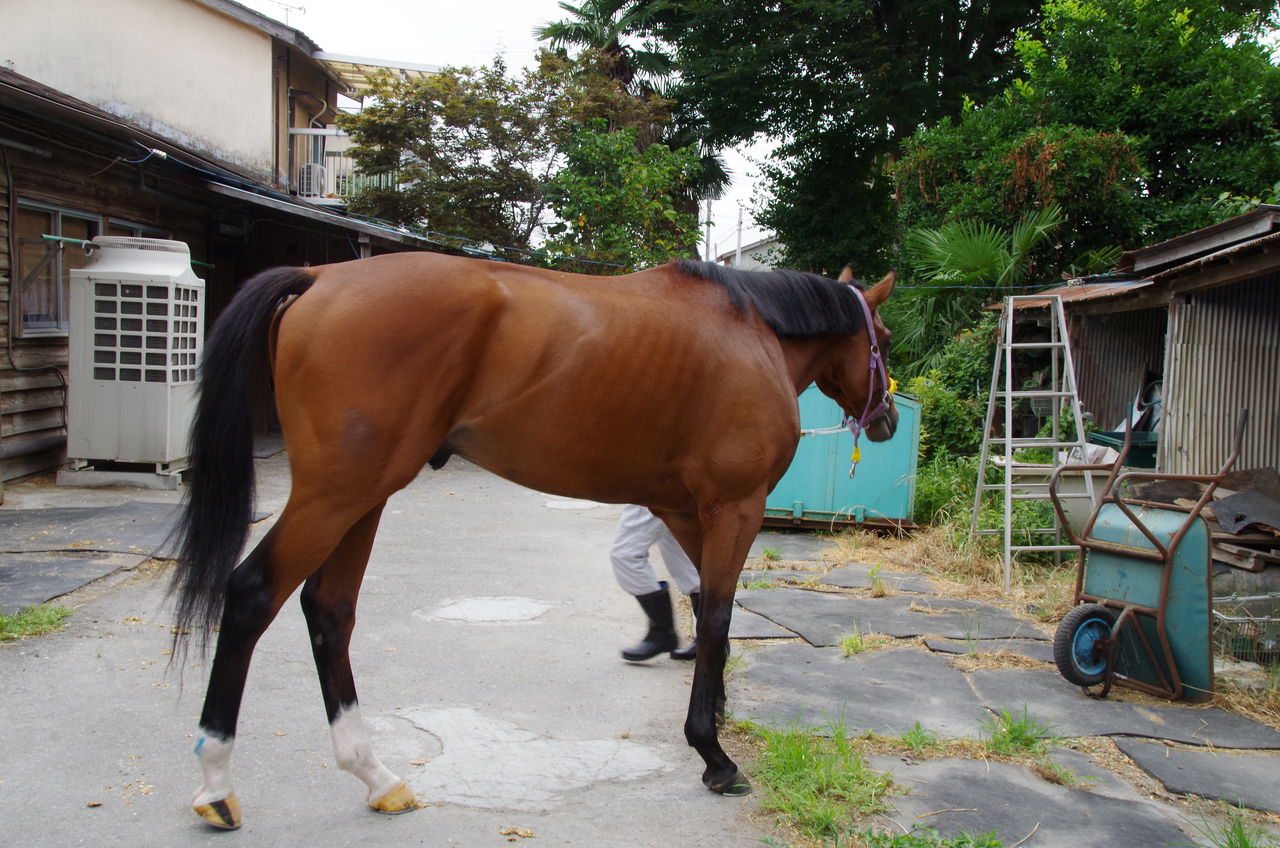 ナイトレイドは、前回外に出して撮影した時と比べ、だいぶ競走馬らしい体型になっていました。