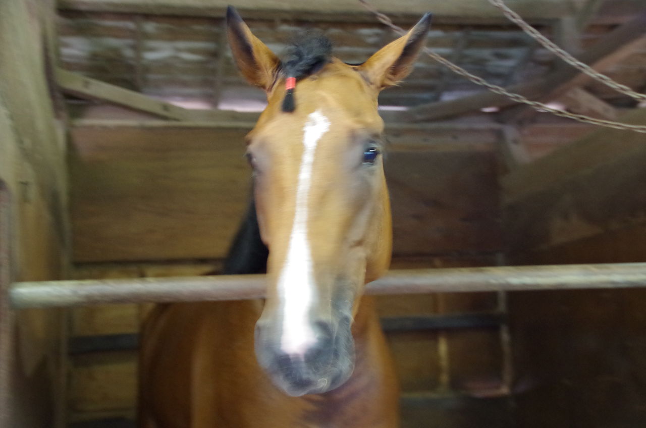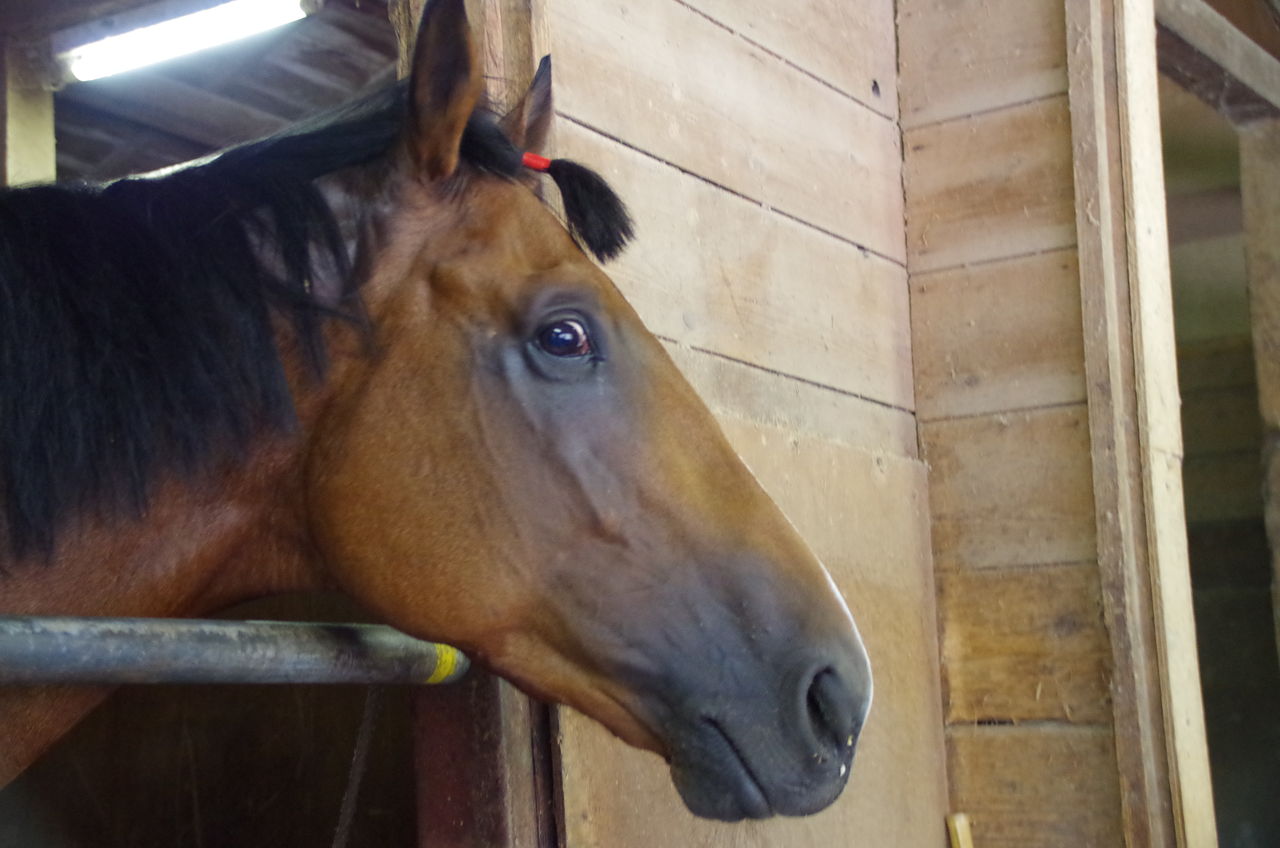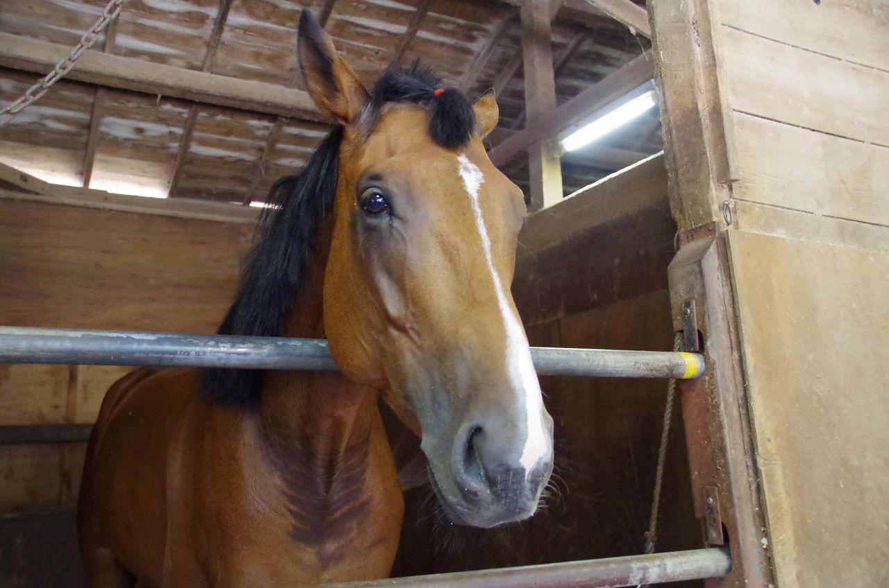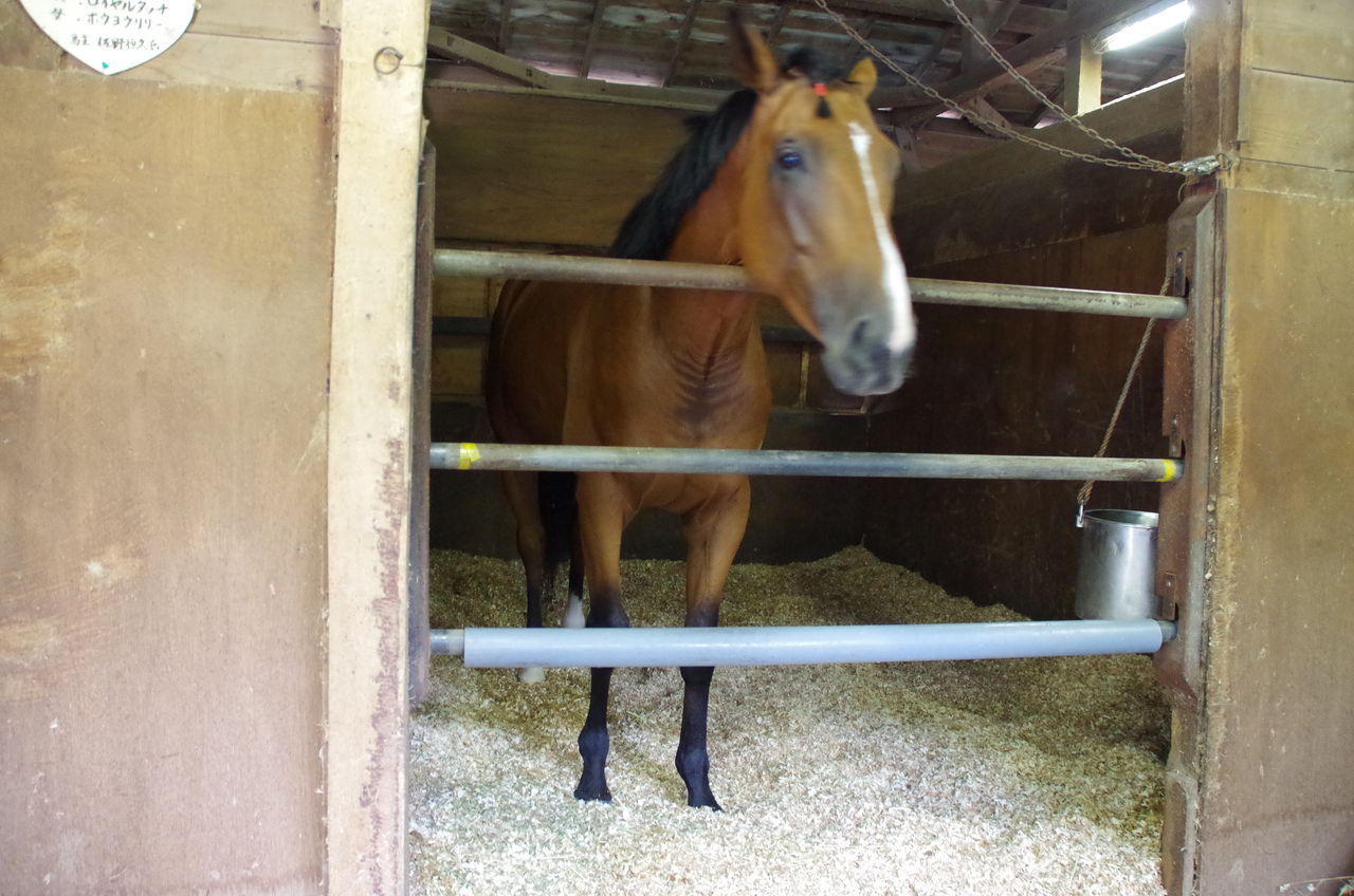 ナイトレイドは、前回外に出して撮影した時と比べ、だいぶ競走馬らしい体型になっていました。