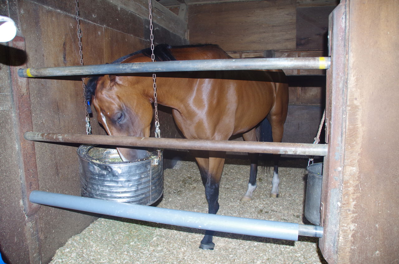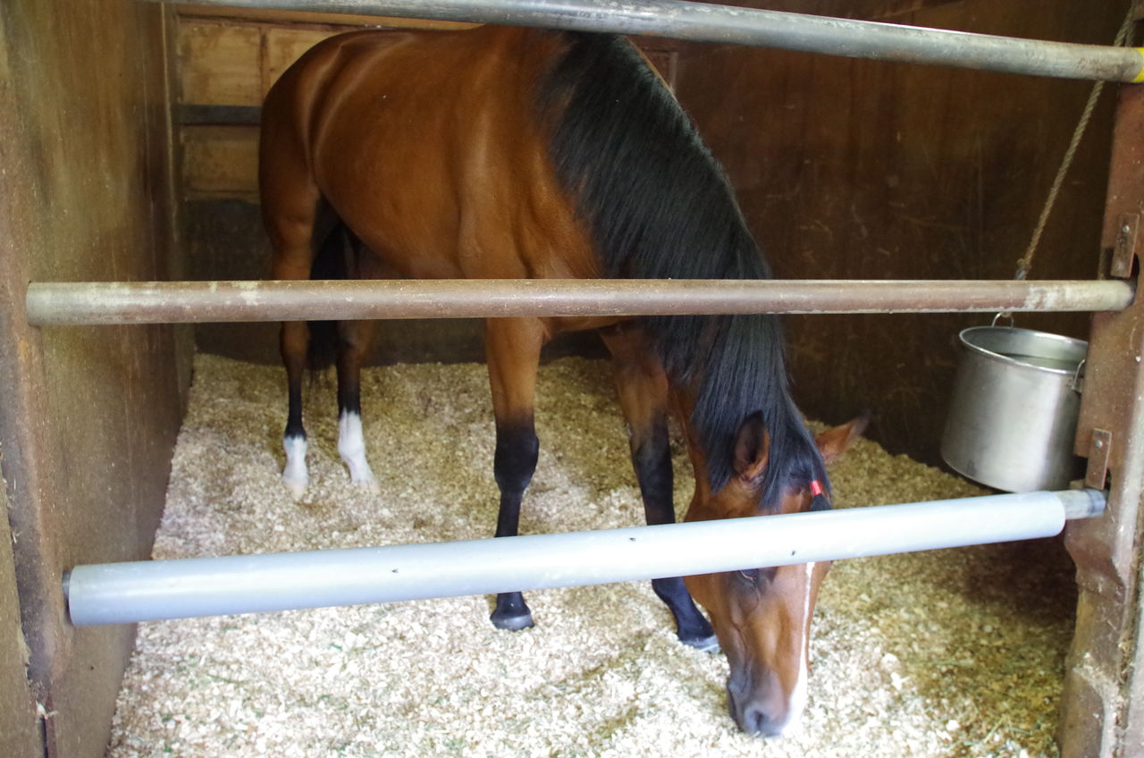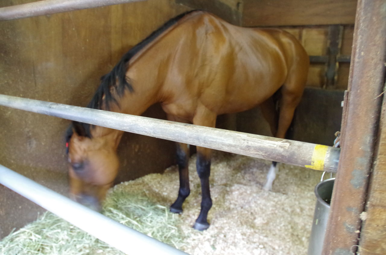 ルミナスコマンダーは、能力試験後も変わりなく飼葉も食べています。