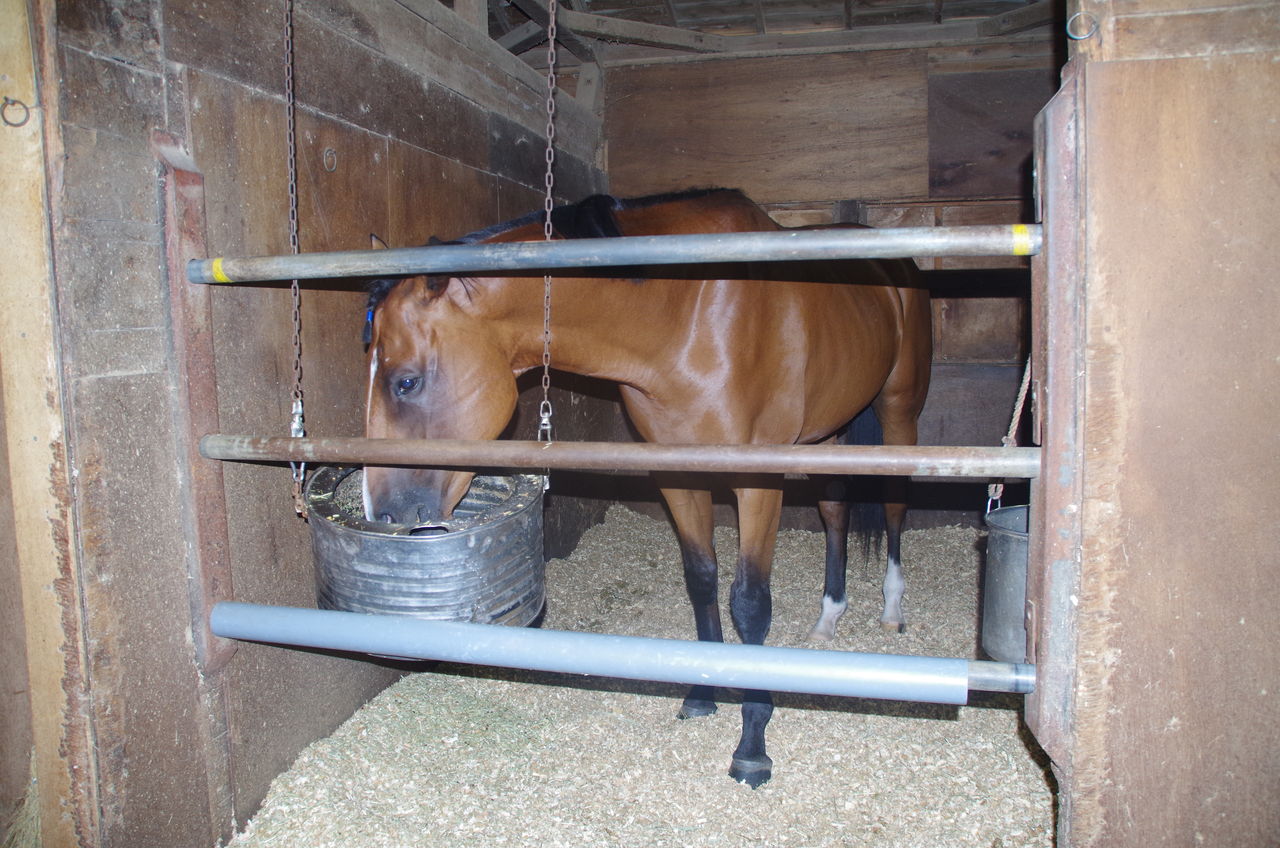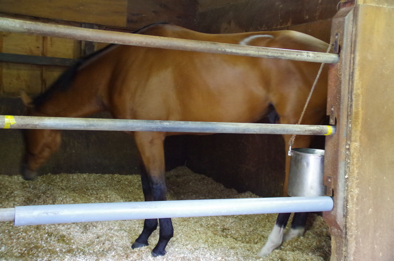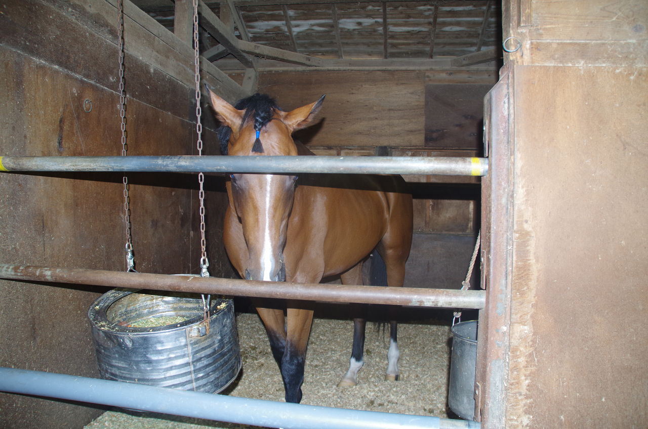 ルミナスコマンダーは、能力試験後も変わりなく飼葉も食べています。